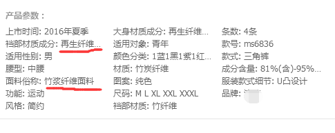 在淘寶搜索”竹纖維“產(chǎn)品 查看他們成分表